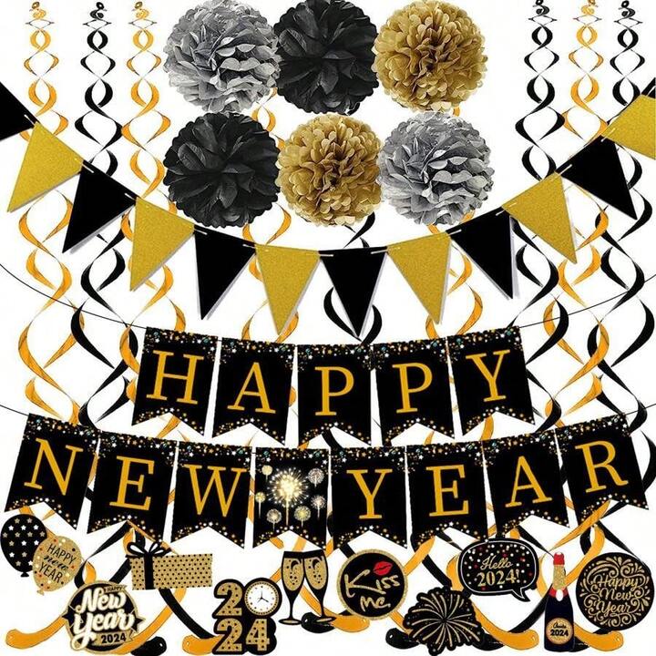 2024 New Year’s Day Party Decoration Set, Including Hanging